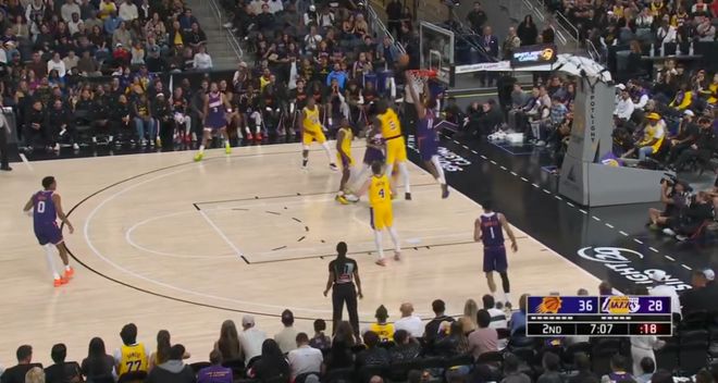 進(jìn)攻端同理,這場(chǎng)比賽湖人少了兩個(gè)持球大核,能夠持球造成破壞的只有里夫斯一人,而且里夫斯和艾頓的默契也不高,所以艾頓無法舒服接球、開心吃餅也是正常。