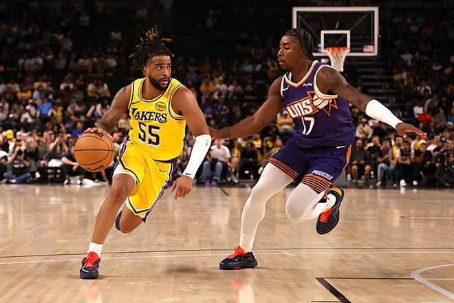 本場(chǎng)比賽中,湖人雖然輸?shù)袅吮荣?,但是球?duì)的替補(bǔ)后場(chǎng)新秀RJ-戴維斯(RJ Davis)的表現(xiàn)還是相當(dāng)不錯(cuò)的。戴維斯全場(chǎng)出場(chǎng)18分37秒,投籃2中1,三分線外2中1,罰球8中8,得到了11分1籃板1助攻的數(shù)據(jù),還有2次失誤和2次犯規(guī),正負(fù)值更是達(dá)到了全場(chǎng)最高的+22。戴維斯的出場(chǎng)時(shí)間也不算太多,但是他在進(jìn)攻端展現(xiàn)出了相當(dāng)不錯(cuò)的突破能力,他也是抓住了機(jī)會(huì)給對(duì)手制造了巨大的威脅,對(duì)手在他身上出現(xiàn)了大量的犯規(guī)。在戴維斯的努力下,湖人在比賽最后一節(jié)更是打出了一波小高潮,幫助球隊(duì)追回了大量的分?jǐn)?shù)。只是湖人先發(fā)球員們的表現(xiàn)真是有些太糟糕了一些,戴維斯的出色表現(xiàn)也是沒(méi)有辦法幫助球隊(duì)起死回生。