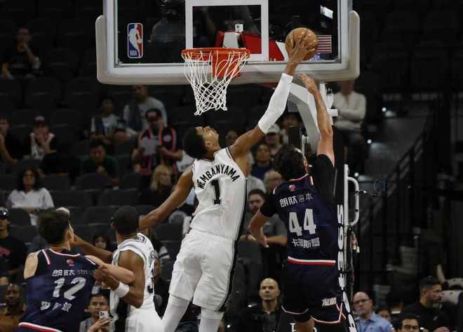 北京時間10月7日,NBA季前賽廣州男籃客場對陣馬刺,郭艾倫未隨隊出征,馬刺缺少??怂埂⒐昱c索漢。馬刺在文班亞馬引領(lǐng)下一邊倒壓制廣州,上半場就取得74-45領(lǐng)先29分優(yōu)勢,下半場比賽提前失去勝負(fù)懸念,最終馬刺119-88輕松大勝廣州取得季前賽開門紅。