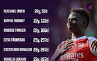 24歲29天,薩卡是英超參與100球第七年輕的球員
